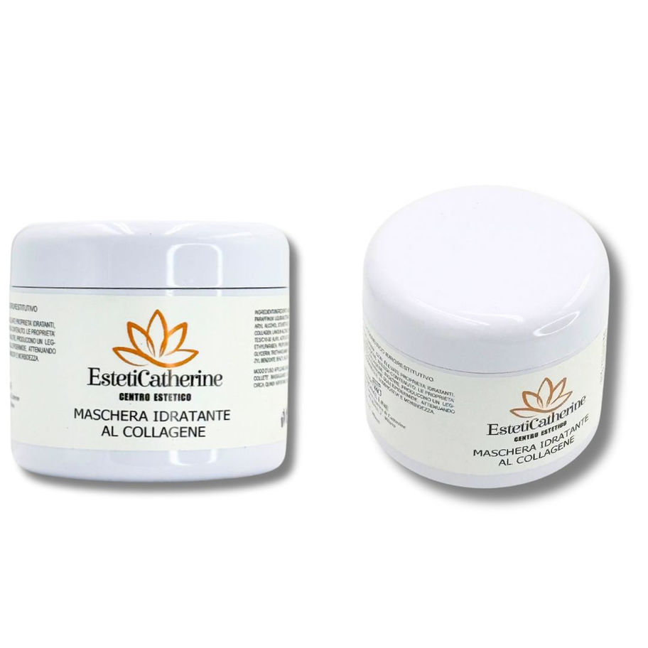 MASCHERA IDRATANTE AL COLLAGENE-100ml PRODOTTO COSMETICO IDRORESTITUTIVO MASCHERA IN CREMA CON ELEVATE PROPRIETA IDRATANTI. GRAZIE AL COLLAGENE IN ESSA CONTENUTO. LE PROPRIETA FILMOGENE DEL COLLAGENE INOLTRE, PRODUCONO UN LEGGERO EFFETTO Dl TENSIONE SULL'EPIDERMIDE, ATTENUANDO LE RUGHE, DONANDOLE LUMINOSITA' E MORBIDEZZA.